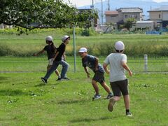 天気がよい日だったので、中庭でおにごっこをする班もありました。