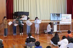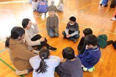 その話を聞いた後、スマイル班(全校縦割り班)ごとに輪になって絵本の内容についての感想を伝え合いました。異学年のいじめ問題に対する思いや考えを聞く機会はなかなかないので、貴重な時間となりました。 会の最後は、仲間集めゲーム(猛獣がりに行こうよ)です。学年関係なく互いに声を掛け合いながら全校で楽しみました。 今回の集会を通して、いじめをしない、いじめを見逃さないということを全校で再確認し、これからも仲良く楽しく過ごせる富岡小学校をみんなでつくっていこうという気持ちをより強くしました。