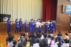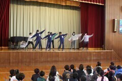 12月16日、放送給食委員会の企画・進行による「歌って踊ってなんでも大会」を行いました。 まず、主催者の放送給食委員が、ミッキーマウス等のディズニーキャラクターになりきってオープニングを盛り上げました。 そして、1~6年生の全部で11組が、バスケットボールのシュートや野球のキャッチボール、そして歌やダンスといった自分の好きなことや得意なことを全校の前で披露しました。 会場からは手拍子や「がんばれ~」といった声援がわき起こり、会場は終始大いに盛り上がりました。