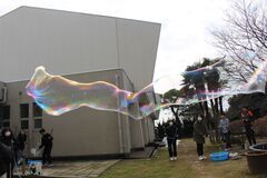 6年生が理科の時間に大きなシャボン玉づくりに挑戦しました。自分の体より大きなシャボン玉ができることも。卒業前にまた一つよい思い出ができました。