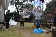 大きなシャボン玉づくりに挑戦