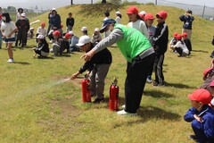 21日に地震とその後の火災発生を想定した避難訓練を実施しました。放送や担任等の指示や誘導の下、中庭に全校が避難しました。実際に防火シャッターを下ろし、経路を確認しながら避難しました。 避難訓練後には、地域の防災士の方から初期消火ということで消火器の使い方を教わりました。児童を代表して5・6年生全員が訓練用の水が入った消火器を実際に使ってみました。