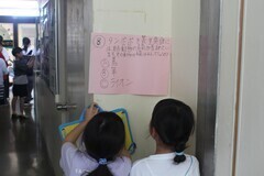 今回、外国語専科の先生と一緒に、院生から3・4年生の外国語活動の授業をしていただきました。3年生は、三角形や四角形など、実際に自分でデザインした模様(形)を英語で説明するなど、外国語(英語)を使った活動を楽しんで行っていました。