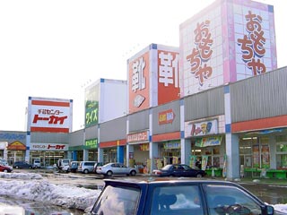 たくさんの店が集まっています。いろいろな店があり、いろいろな品物を売っているので、一度で買い物をすませることができます。